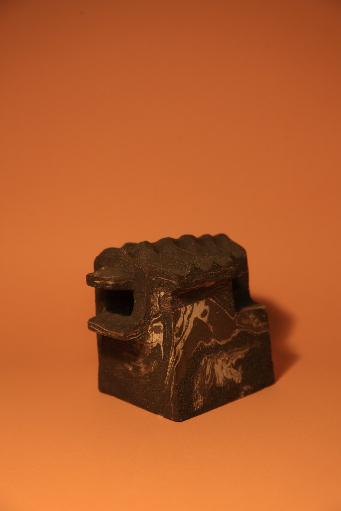 JAIME RIVERA FUENTES, Ermita # 26, arcilla refractario negro y óxido de hierro, 9 x 15 x 10 cm, 2019.