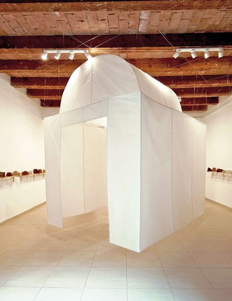 ▲ Ermita Padre, instalación basada en la escultura Ermita #32 de Jaime Rivera, papel japonés y alambre, 212 x 375 x 314 cm, 2024.