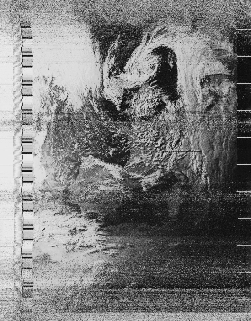 Este orbita a 26.823 kilómetros de separación del punto donde se encuentra instalado el artista con una antena de fabricación casera, una computadora y un software de uso libre que decodifica el sonido de las ondas de radio en imágenes. Las capturas tienen un ancho fijo de 2080 píxeles (una resolución de 4 kilómetros por píxel); mientras que el alto de las mismas varía en función del tiempo que se consiga mantener la conexión a la señal.