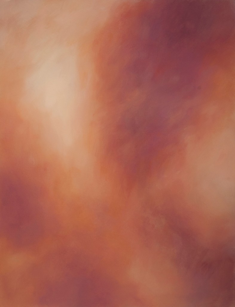 Los colores resultantes de la obra equivalen a la yuxtaposición de decenas de capas transparentes, consiguiendo profundidad y una sutil riqueza cromática que transforma ese Ambient tonal y evanescente en representación de sí mismo, dotándolo de un cuerpo con memoria y existencia, como si de atmósferas musicales se tratara, que ralentizan, desaceleran y materializan el momento pictórico en preludios del amanecer, el atardecer o el anochecer.