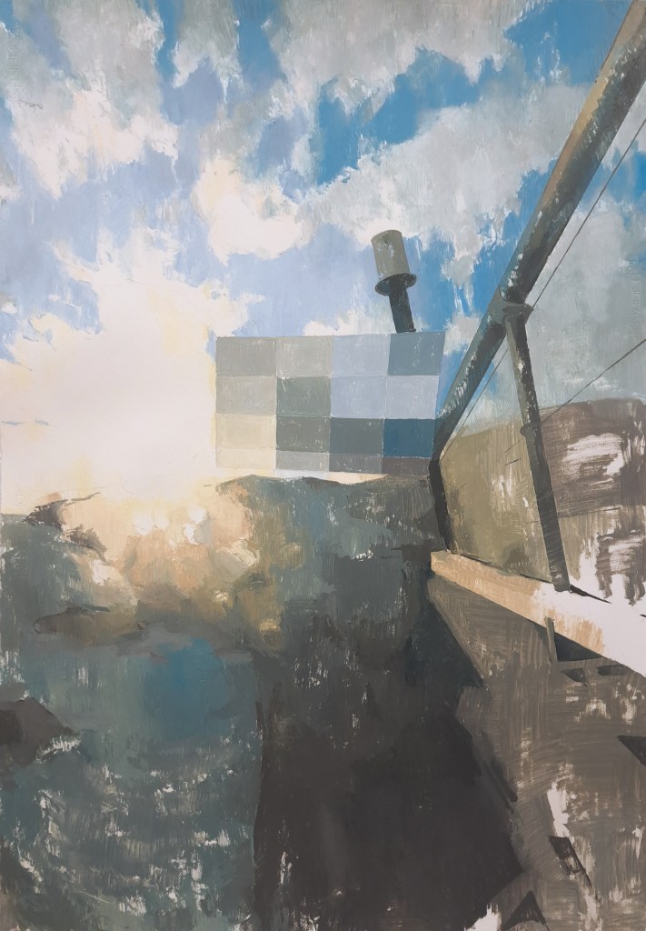 MIRANDA PASTOR, Live camera in Ivrea, dia, oli sobre paper, 100 x 70 cm, 2025.