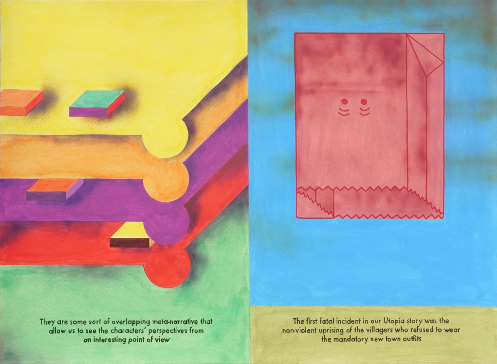 La exposición de pintura y escultura UTOPIA SIMULACRUM, es la puesta en escena de “UTOPIA, A Folk Tale About the Avant-garde”, un proyecto editorial de Paco Rico, publicado por THE BAD DOG TRUCK BOOKS, en 2021. Un viaje redentor que despliega, a la manera de La Odisea, o la Divina comedia, un retorno artístico y totalitario que gira alrededor de las ideas liberadoras con las que nacen las vanguardias, cuyos protagonistas, héroes convertidos en villanos, se ocupan de remover la percepción conservadora de las tradiciones.